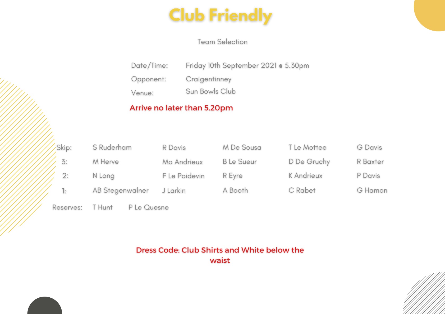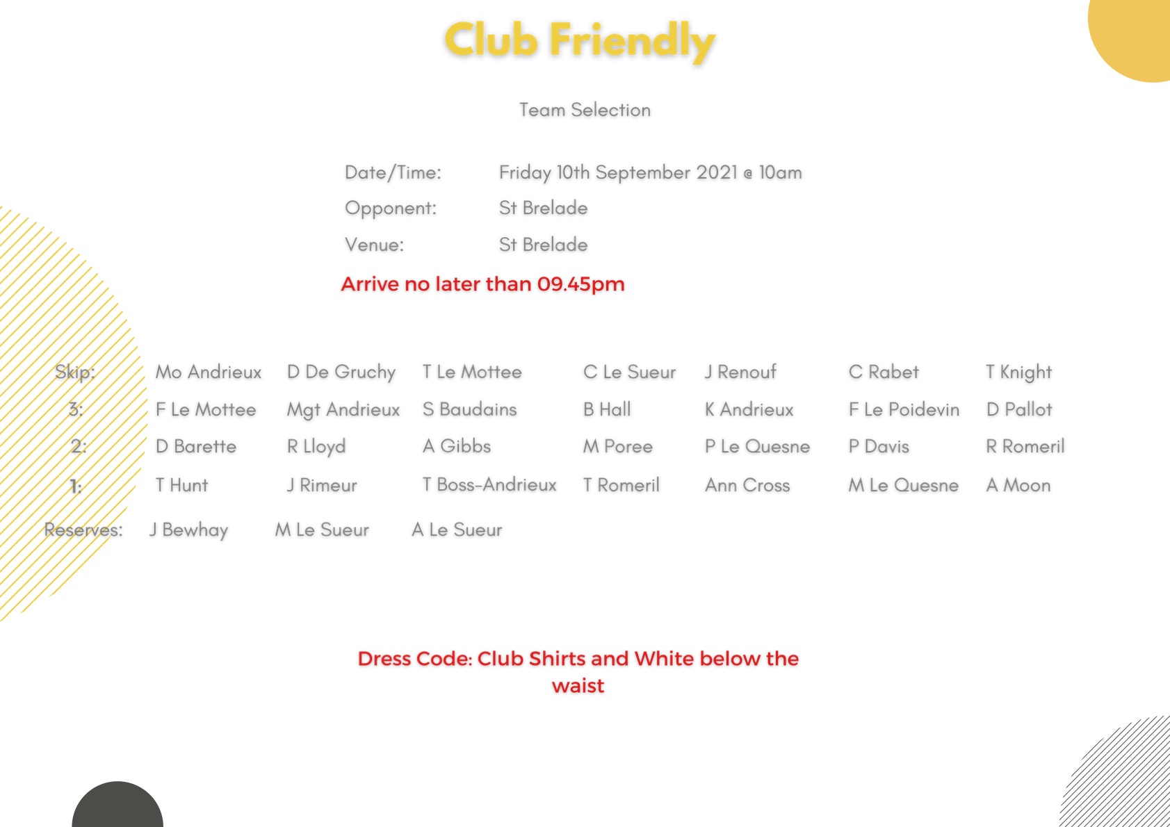 Club Friendly v St Brelades: Friday 10th September @ 10am at St Brelade: